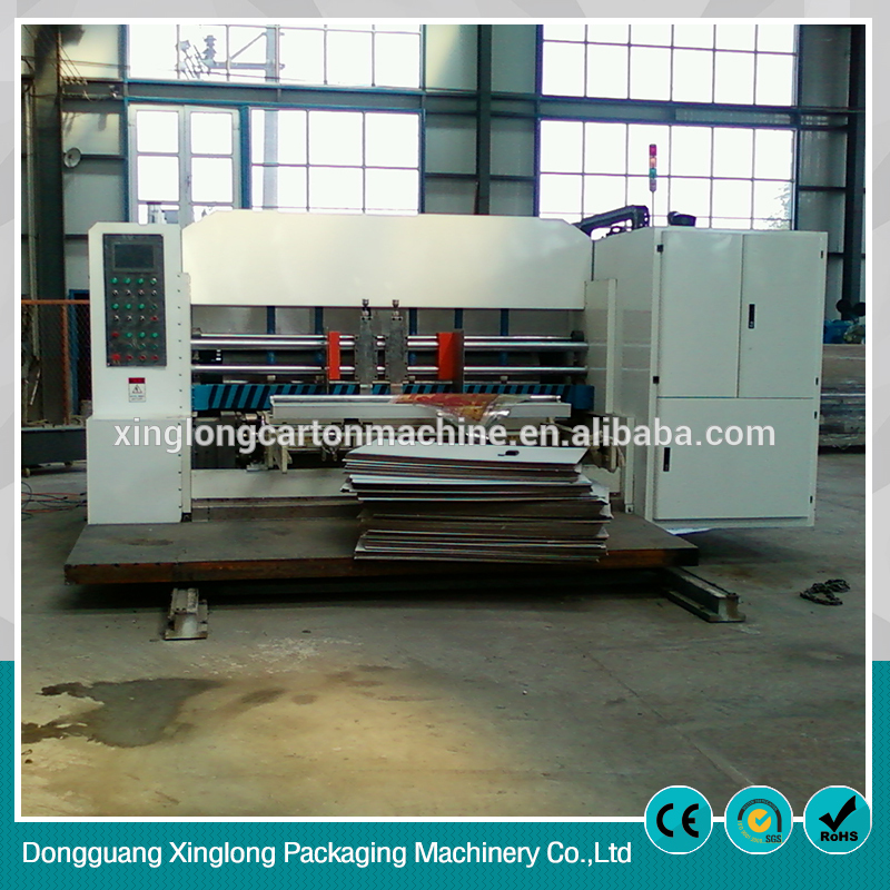 The machine can finish multi processes one time such as: printing, slotting, creasing, trimming, corner cutting, punching, die cutting, stacking and so on.
