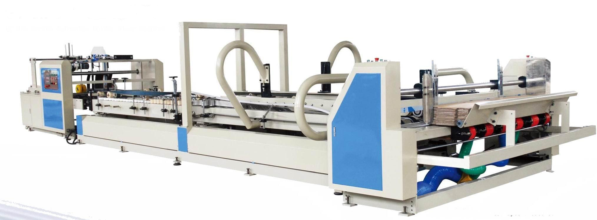 This machine is the last process equipment of the carton folding, it is used to combination of 3 and 5 layer corrugated cardboard production line( if need to glue 7 layer cardboard, we also can produce according customers’ appointed). Efficiency and production is attractive. The prominent advantage is low cost , strong adhesion, simple operating, saving labor and electric, runs smoothly, it is idea equipment for exporting advanced carton.
