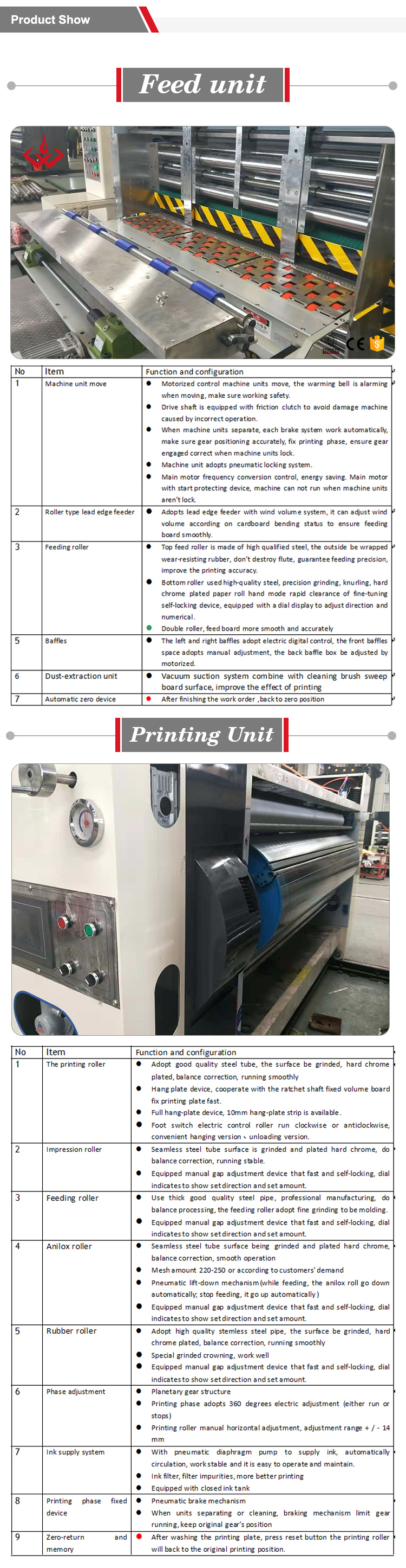 The machine can finish multi processes one time such as: printing, slotting, creasing, trimming, corner cutting, punching, die cutting, gluing and so on.